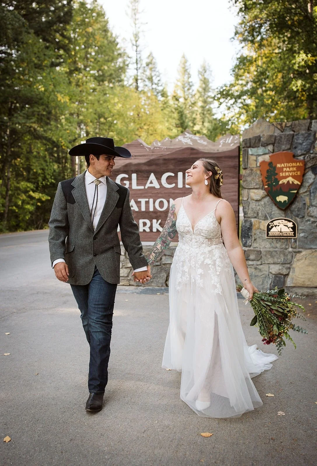 Micah and Kailin’s late September Montana wedding day was unseasonably warm, bright and vibrant. They chose this meadow as their micro-wedding venue as they wanted a spot that would be accessible and navigable for both of their parents to be present while having a great view outdoors. They knew they wanted photos at Glacier National Park afterwards and were excited to avoid the hassle of permitting needed inside the park. There was palpable excitement (nerves!?) that shifted quickly to overwhelming joy and delight with this very passion filled couple and their inclusive compassion and respect for their parents.